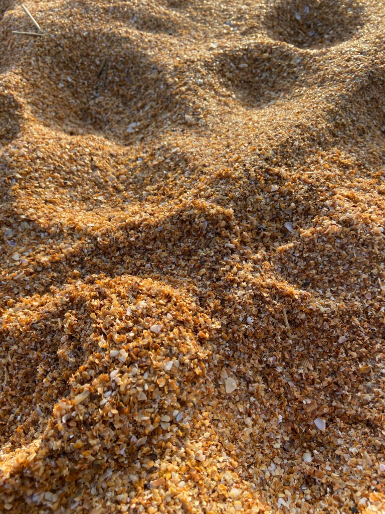Flagler Beach’s sand is interesting. The small particles are traded in favor of larger pieces of shells.
