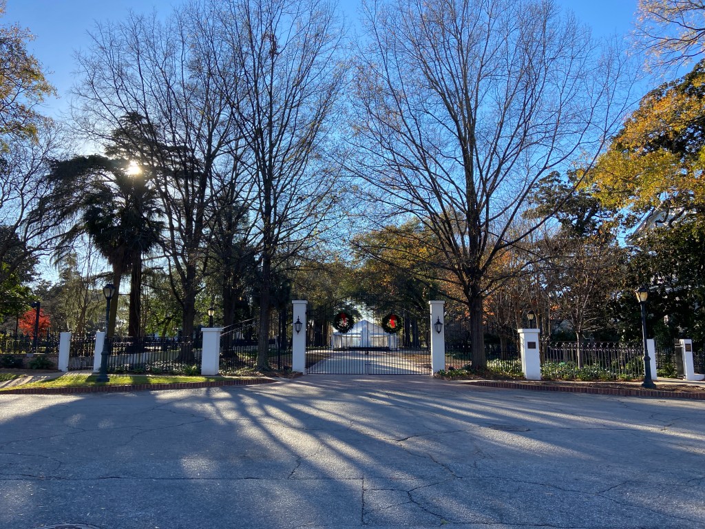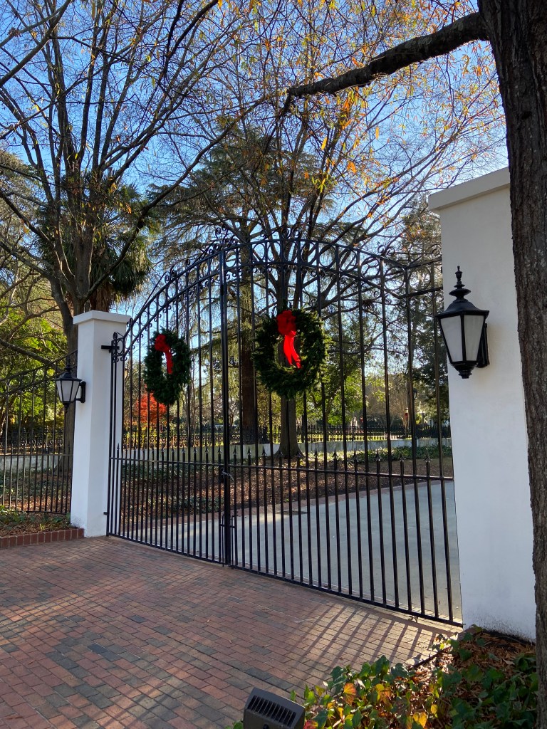 Anyway, these gates guarding the mansion were ornately decorated with wreaths, fresh from South Carolina! (maybe, but probably not)