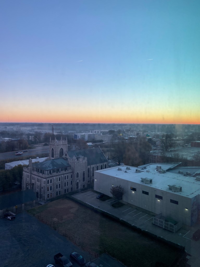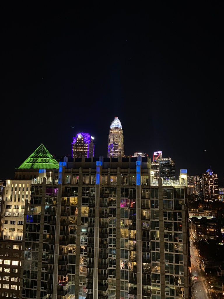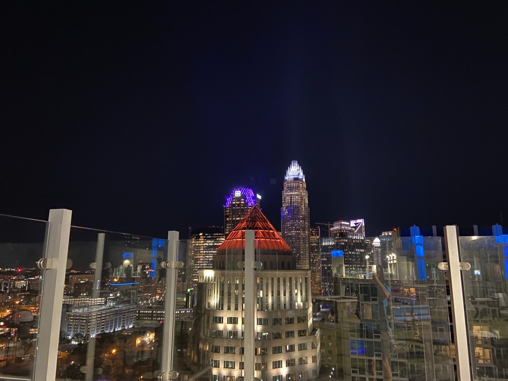 By the time Charlotte’s glittering skyline broke the horizon, the sun was long gone.