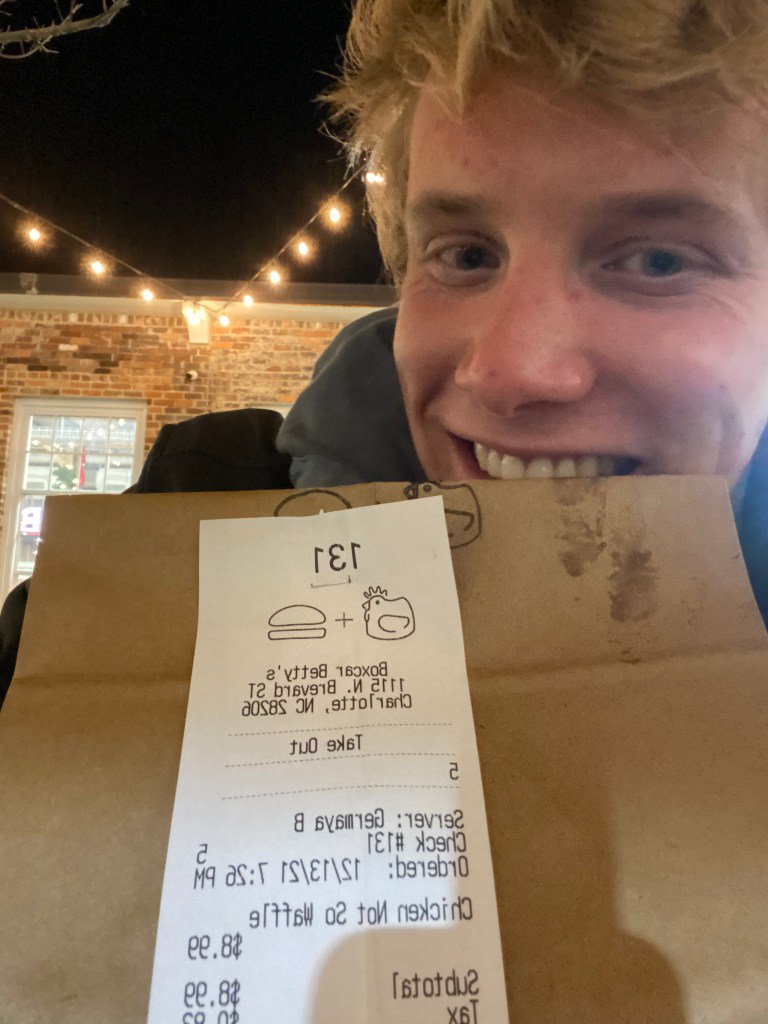 I got a waffle chicken sandwich from Boxcar Betty’s…