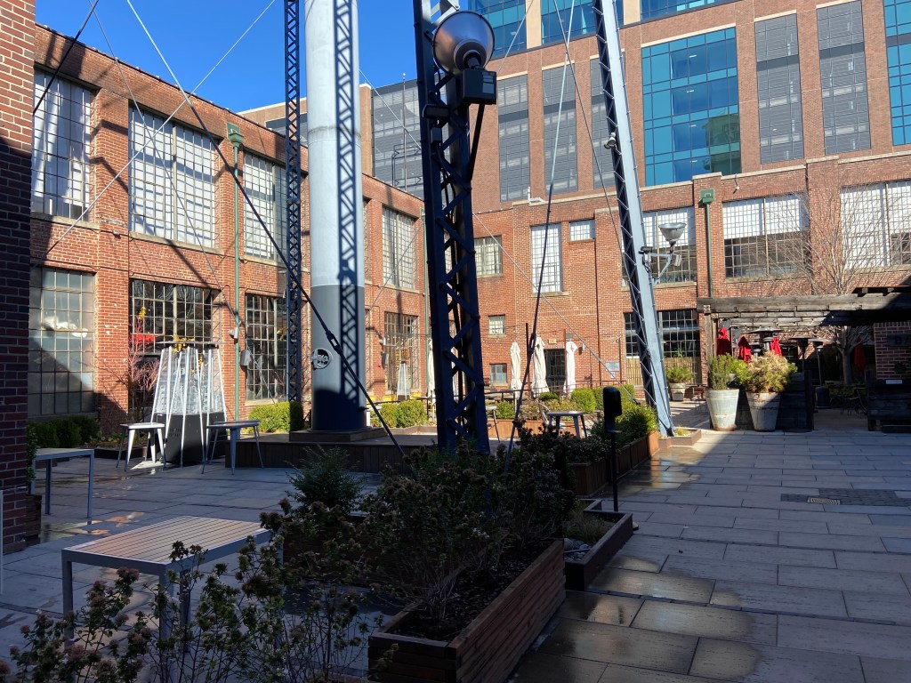 The area sees two concentrations of shops, the Design Center and Atherton Mill. Atherton Mill used to be one of the city’s largest textile mills, while the design center has a cute courtyard beer garden with a water-tower.