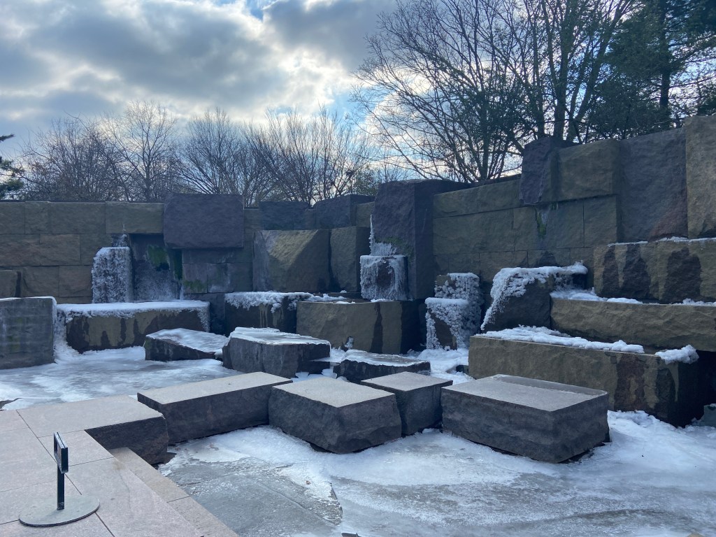 The Franklin D. Roosevelt Memorial is a much better experience in the summer, when all the water is active. However, even with the fountains off, one had created an icy backdrop straight out of ‘Frozen.’