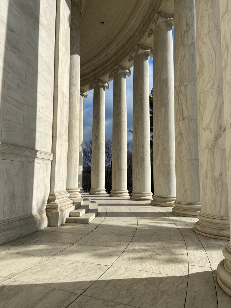 Finally making it to the Jefferson Memorial, we were mortified to find that the location on the basin created a wind tunnel!