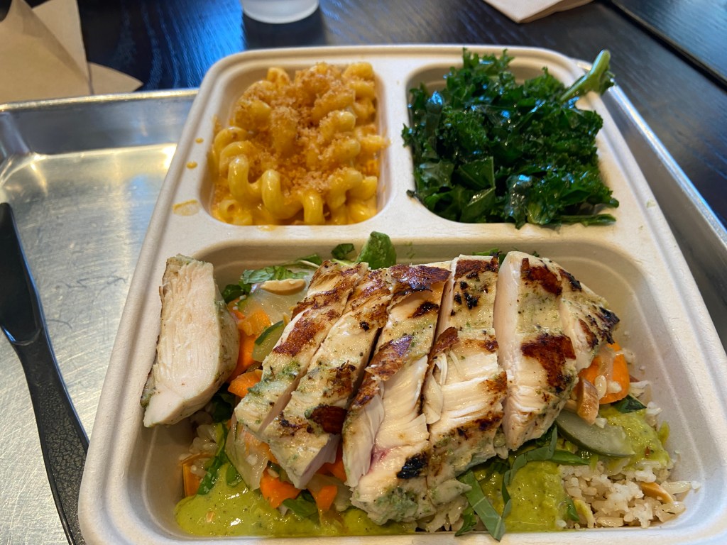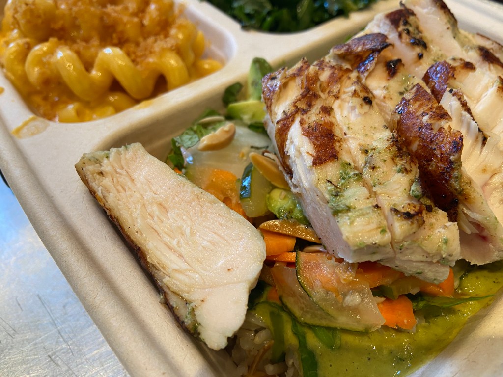 Everything about the meal left me speechless, from the juicy chicken, rich macaroni, and the basil-avocado sauce.