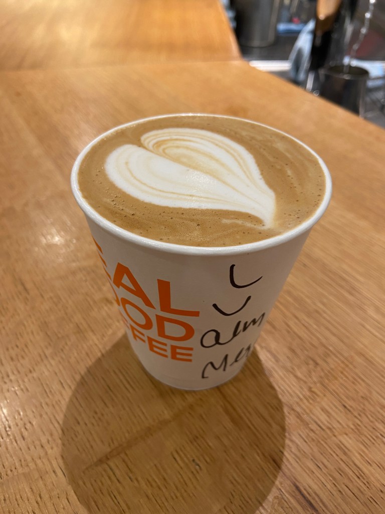 While on the train, I had made a quick search to find a highly rated coffee shop and found Dua Coffee. I made the chilly half-mile walk through the city munching on my Chocolate Rose.