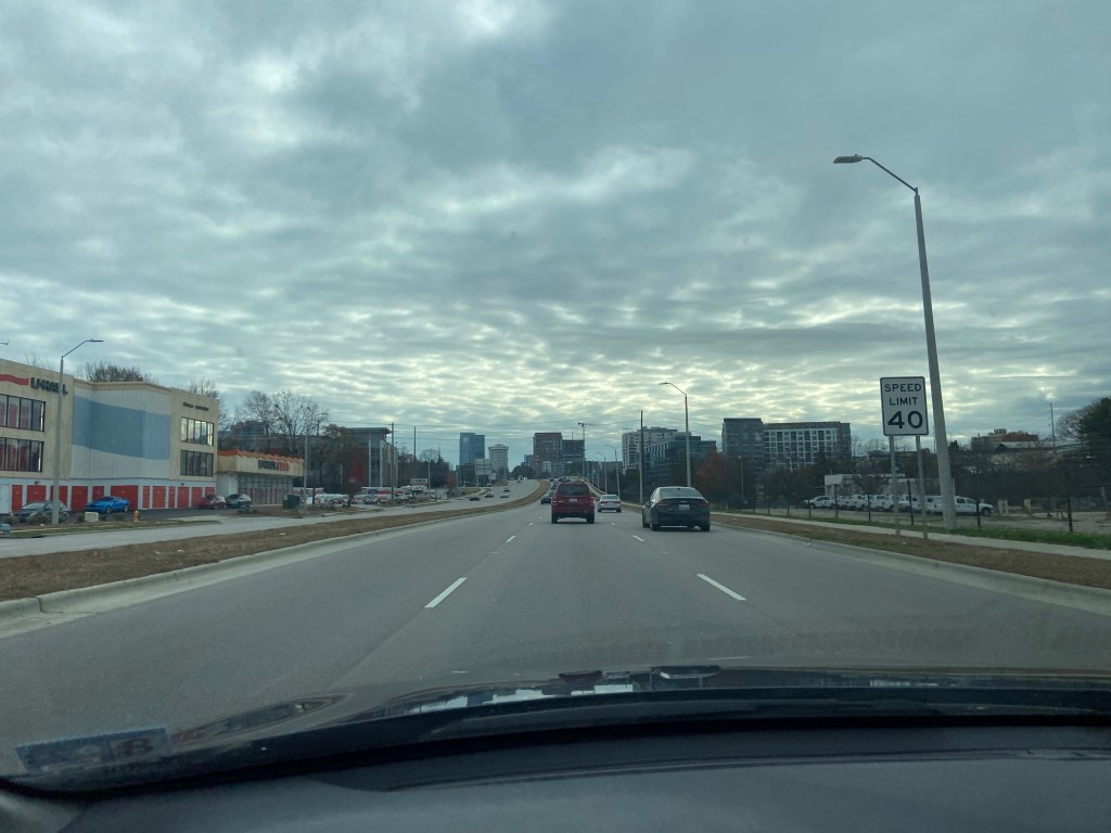 Two and a half hours later, the skyline of Raleigh loomed on the horizon. And yes, I was surprised by the existence of the buildings too!