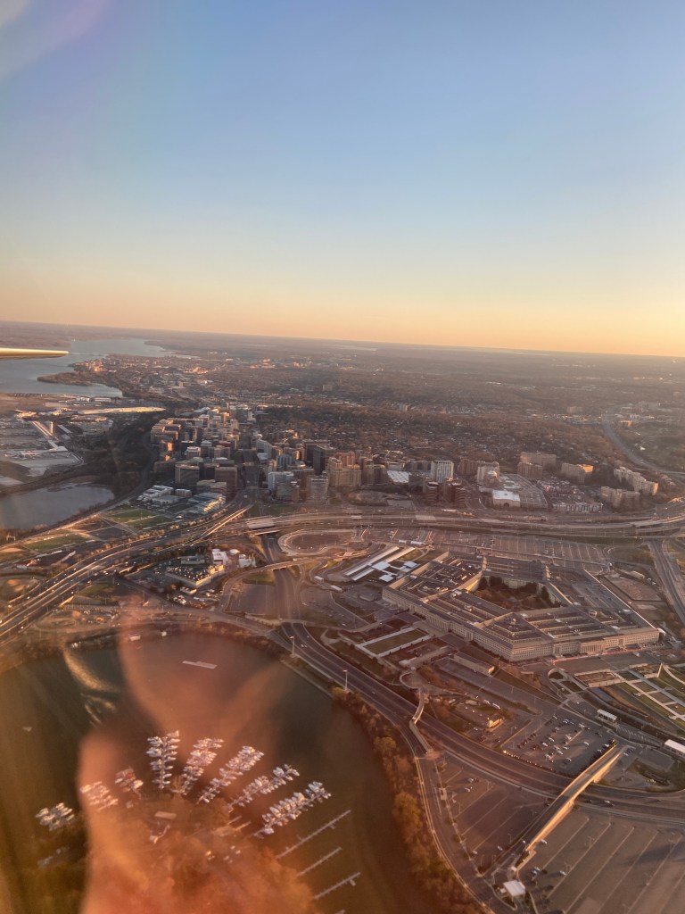Immedately after take off we flew over Crystal City and the Pentagon.