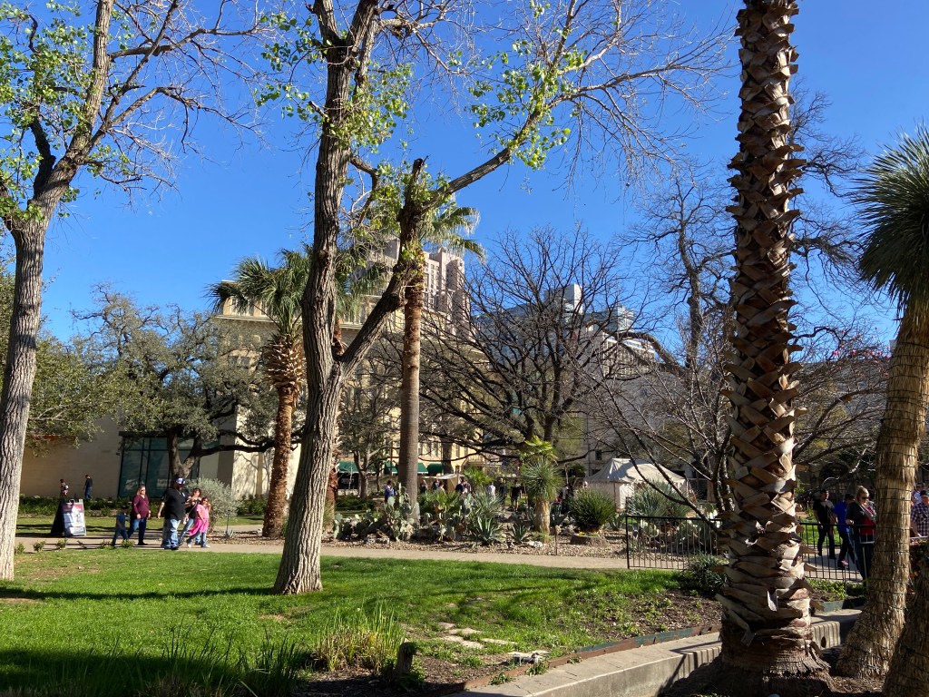 To play Devil’s Advocate, the Alamo sits on some gorgeous grounds. The back garden area has some flowers, trees and water features.