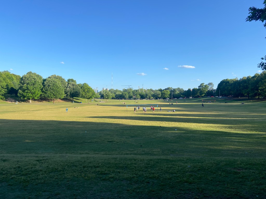We hopped back onto the Beltline and walked up to Piedmont Park. It was honestly perfect. The sun had just started setting and the park was alive with people hanging out and playing games.