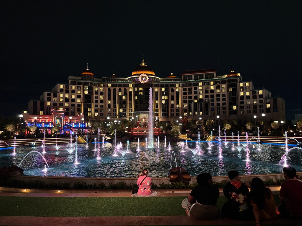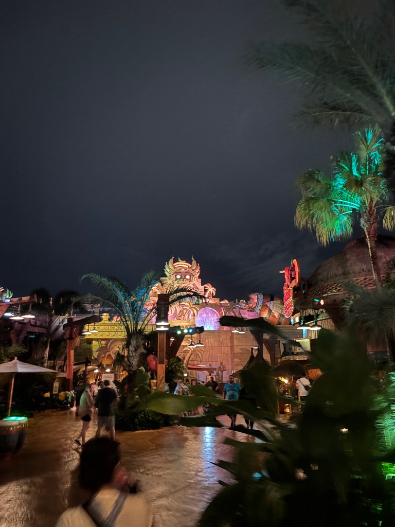When we got to Mario Kart, it was also closed. Annoyed, we decided to get some drinks and explore the park after dark.