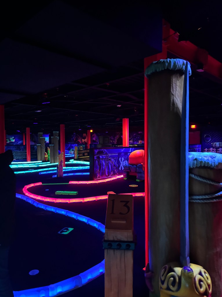 Our last stop was a glow-in-the-dark mini golf course at the Virginia Beach Town Center.